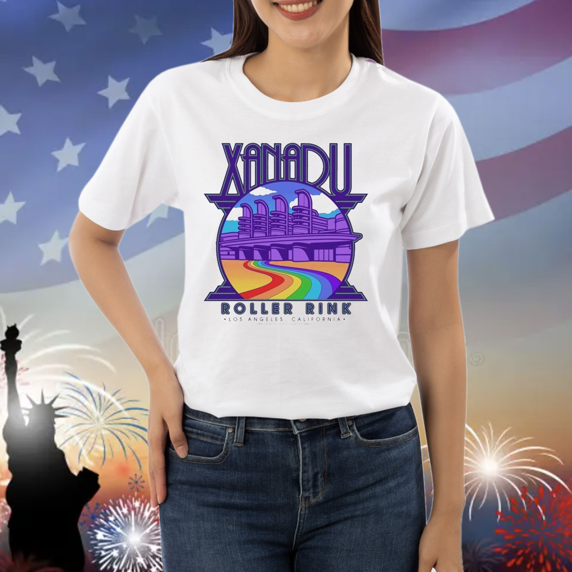 Olivia Newton John Rainbow Xanadu Roller Rink Los Angeles California Shirt